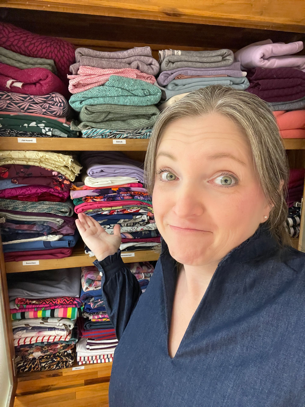 Wer kennt es nicht: Das Hobby, welches heimlich neben dem Nähen angeschlichen kommt und von dem man vorher gar nicht wusste, dass es ein Hobby ist – Stoffe kaufen und horten. 🙈😁 Ich habe auf jeden Fall mehr Stoffe als ich in diesem Leben vernähen werde und trotzdem fehlt dann noch dieser eine Stoff für ein bestimmtes Nähprojekt. 😇 Auf der anderen Seite kann ich in meinem Stofflager shoppen gehen, wenn ich eine spontane Idee habe. Und ich freue mich riesig, wenn ich meine Schätzchen wieder entdecken und sie streicheln darf. Dann ist es fast so ein Glücksgefühl wie bei der ersten Begegnung und dazu sogar kostenlos. 🤣 Und das ist es doch, worum es beim Nähen geht: Glücklich zu sein! ❣️